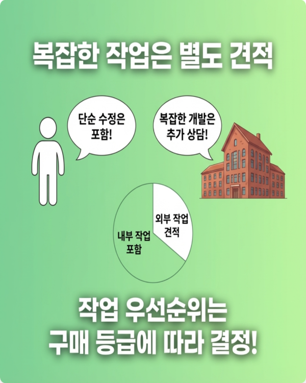 - 복잡한 수정 작업 (1일 이상 소요): 별도 견적 및 작업 일정 안내