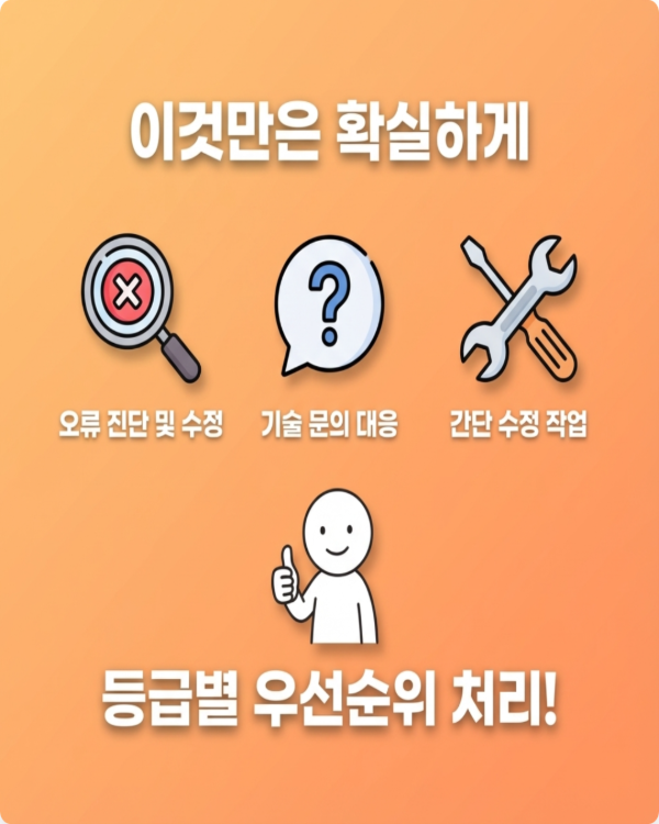 - 작업 우선순위는 구매하신 유지보수 등급에 따라 결정됩니다